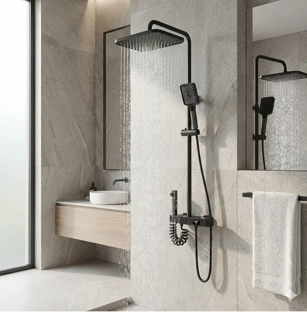 Panel de Ducha Inteligente - Experiencia de Spa 5 Estrellas Con sistema de tecnología hidráulica, control termostático de precisión y 4 modos de lluvia 🚿. Disfrutá de una ducha relajante, diseño vanguardista y el ahorro de agua en un solo equipo. El upgrade que tu rutina diaria merece